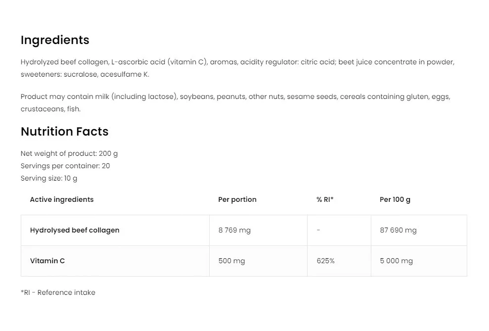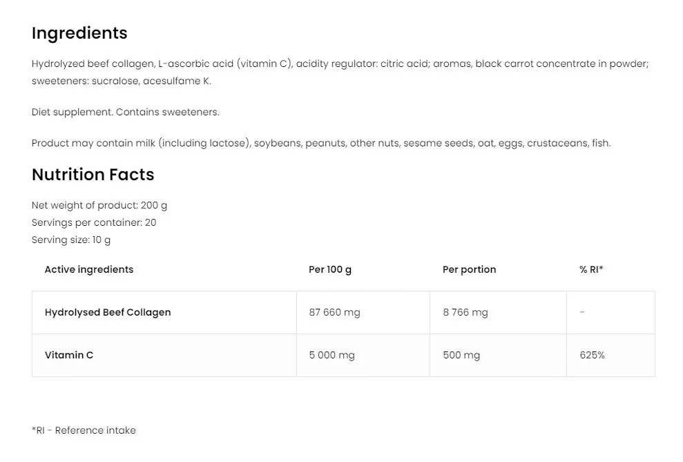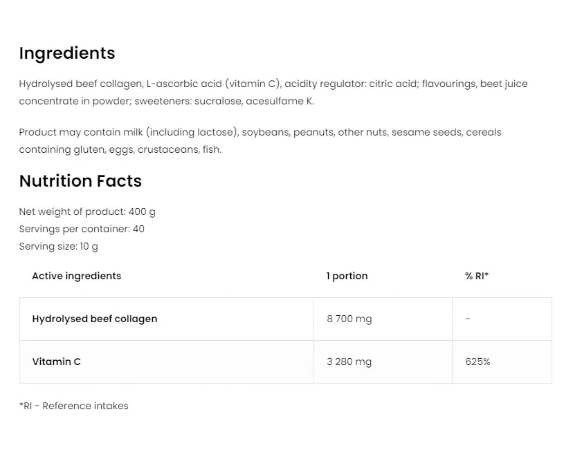 Visokokakovostno prehransko dopolnilo, ki je vir hidroliziranega govejega kolagena in dragocene L-askorbinske kisline. -