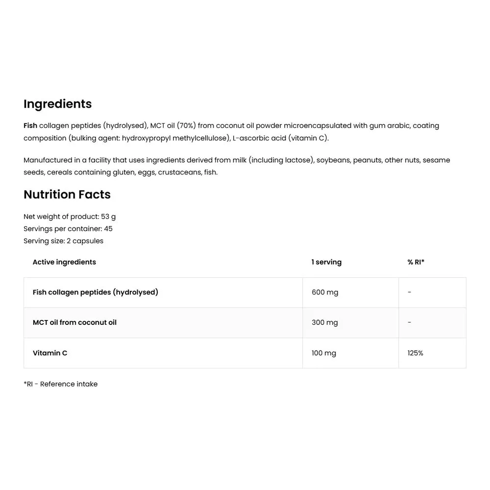 Kot na primer olje morskega kolagena tipa I MCT, pridobljeno iz kokosovega olja in vitamina C.OstroVit Marine Collagen + MCT Coconut Oil je prehransko dopolnilo, ki je vir treh dragocenih učinkovin, kot sta morski kolagen tipa I MCT olje, pridobljeno iz kokosovega olja in vitamina C. Gre za pripravek, ki je na voljo v obliki kapsul za enostavno požiranje in je odličen kot dodatek vsakodnevni prehrani fizično aktivnih ljudi in tistih, ki skrbijo za zdrav in lep videz.